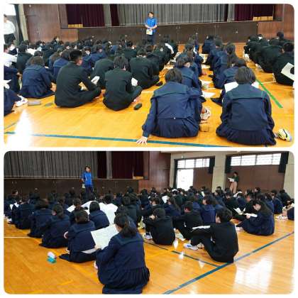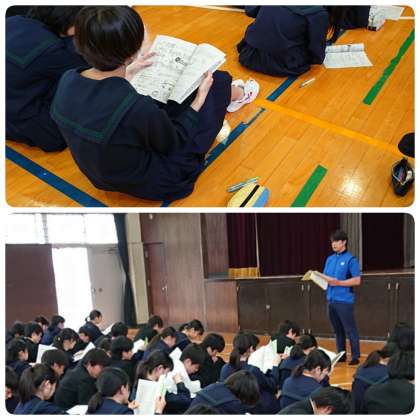 5月10日(金)5・6時間目、3年生は体育館で修学旅行に向けての取組です。