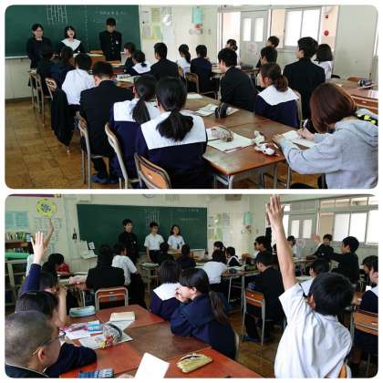 5時間目は各クラスで、6時間目は各クラスの代表班が武道場で発表しました。