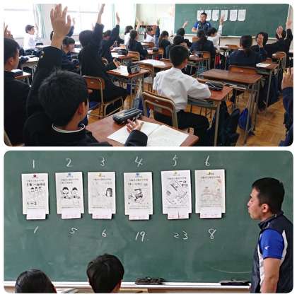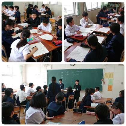 5月10日(金)6時間目、1年生は各教室で一泊移住のしおりの表紙・裏表紙の投票、文化祭のテーマの話し合い、5時間目の人権学習を受けての自己チェックなどに取り組んでいました。