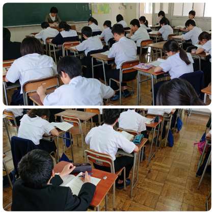 5月13日(月)、2年生は1時間目に1・3組、6時間目に2組が各教室で、いじめや思いやりなどをテーマに道徳の授業に取り組みました。