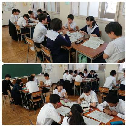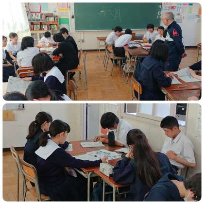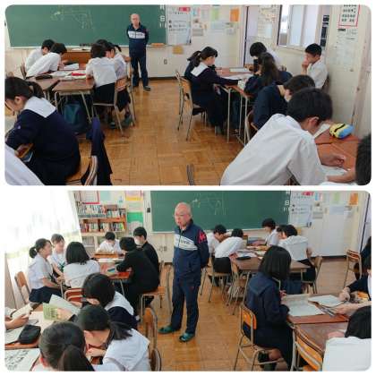 5月16日(木)1時間目、3年生はトラックに旅行用バッグを乗せたのち、各クラスで修学旅行に向けた取組をしていました。