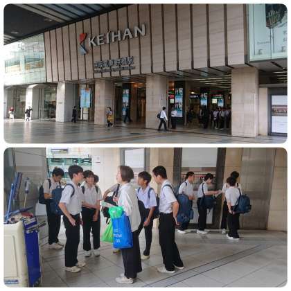 午前7時30分、一番早い班が京橋駅で先生のチェックを受け、京阪電車に乗車して門真市駅に向かいました。