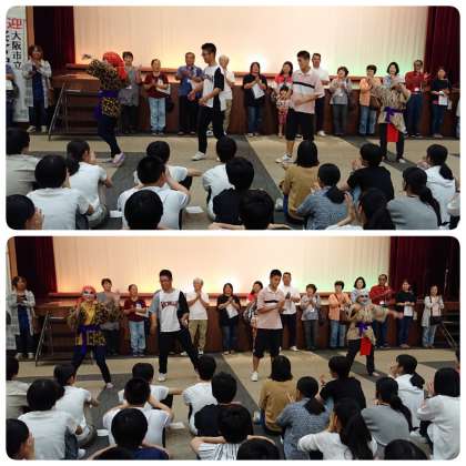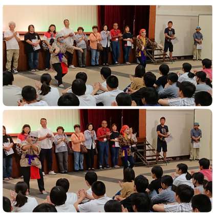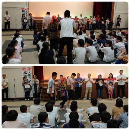 歓迎の舞の途中、名倉君と東田君が引っ張り出され、一緒に踊りました。