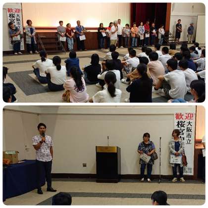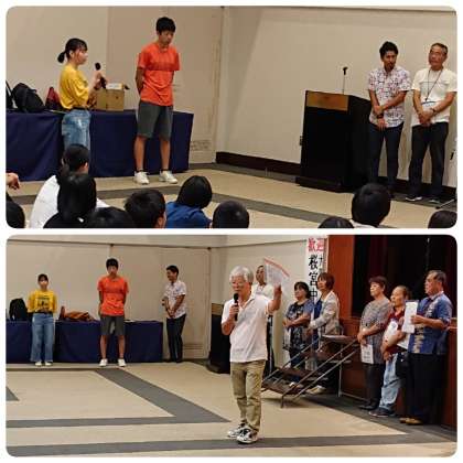 歓迎の舞に続いて、入市式です。高橋君の司会で始まりました。光金さんの生徒代表の挨拶に続いて、民家の代表の方からご挨拶をいただきました。