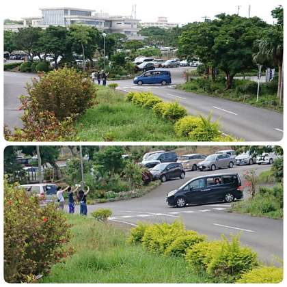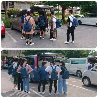 民家さんの車に荷物を乗せ、各家庭に出発です。