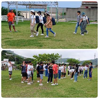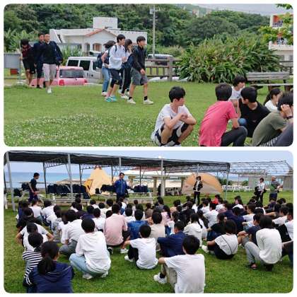 各民家に分かれて体験活動をし、お昼を食べたあと、各民家さんの車で送ってもらい、あざまサンビーチに全員集まってきました。