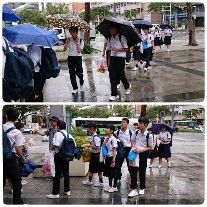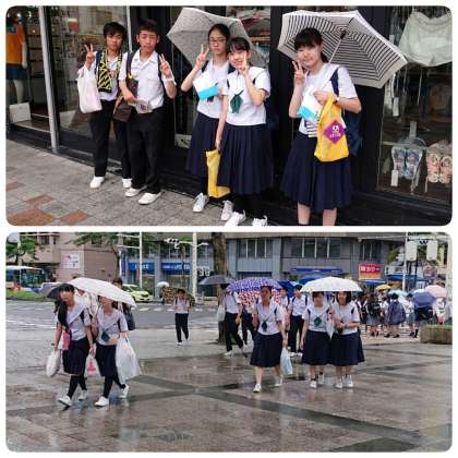 12時、集合場所の沖縄県庁前に全員、買い物を終えて集合しました。