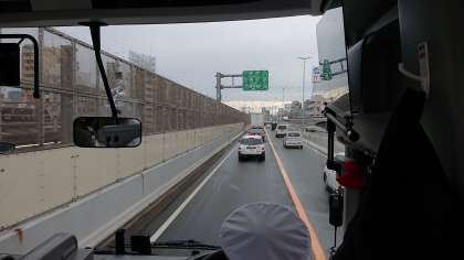 18時00分、淀川を越えて車が流れ出しました。学校到着は18時20分くらいになりそうです。