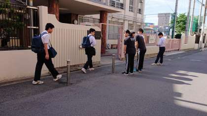 午前8時前から正門で、登校してくる子どもたちに先生方と一緒に挨拶の声をかけてくれています。
