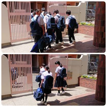 明日の1年生は、ピロティーに午前9時00分集合完了時間です。