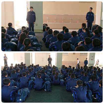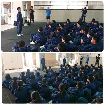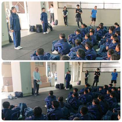 校長先生の挨拶に続いて、北野さんが生徒代表をし、一泊移住の目標などについて確認しました。