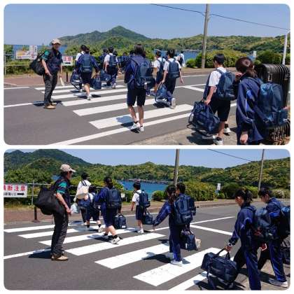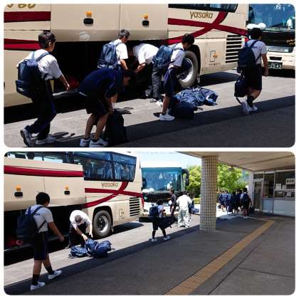 全、元気に到着です。荷物をとって砂浜に移動です。