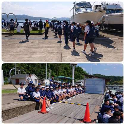 全員がヨットハーバーに移動し、インストラクターからカッター訓練の説明を聴きました。