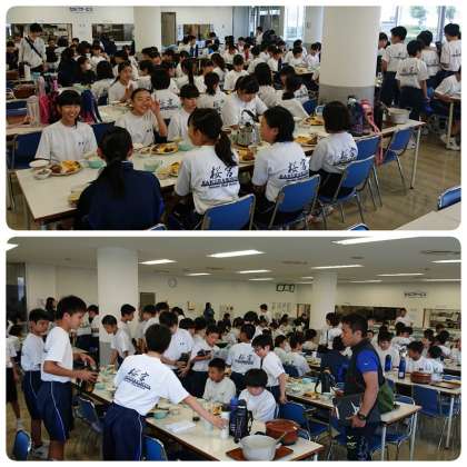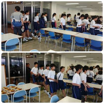18時05分、食事係が夕食の準備を終え、食堂に集まってきました。