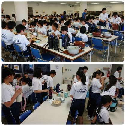 18時45分、上谷さんがご馳走さまの声を掛け、調理員の皆さんに感謝の気持ちを伝えました。