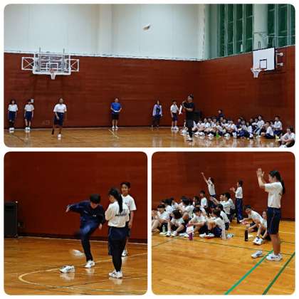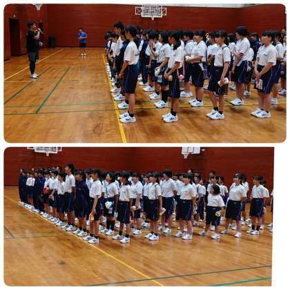 林先生の司会で室内オリンピックの各競技が始まりました。開会式では、大きな声で校歌を歌いました。