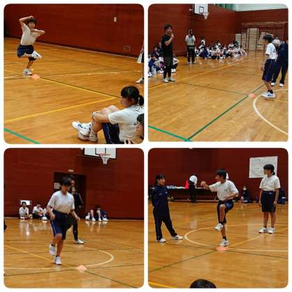 写真は片足立ちの時間を競うフィギュアスケート、靴を遠くへ蹴り飛ばすサッカーです。