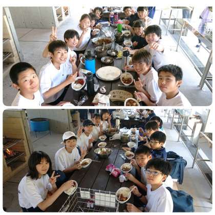 カレーができた班から昼食開始です。早い班は10時半過ぎにできあがりました。
