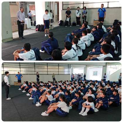 15時20分、バスは学校東門前に到着しました。ピロティに移動し、解散式です。