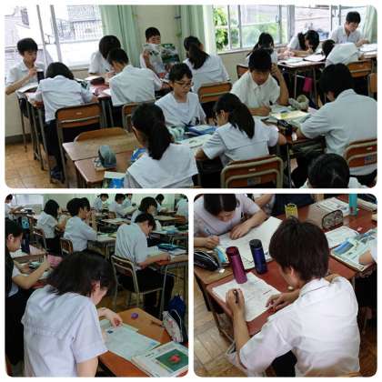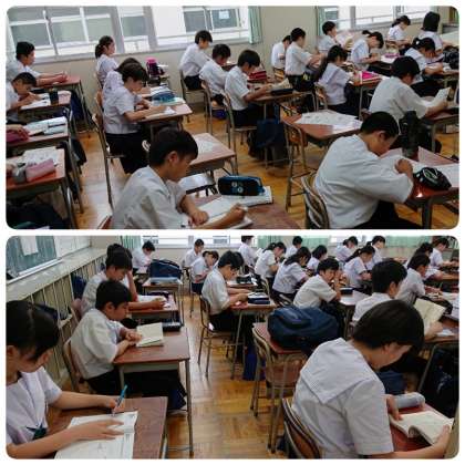 午前8時20分にはどの学年も教室に入り、静かに読書やテストに向けての自主学習に取り組んでいました。8時25分、予鈴で朝のあいさつをし、担任の先生からプリント類が配布されました。