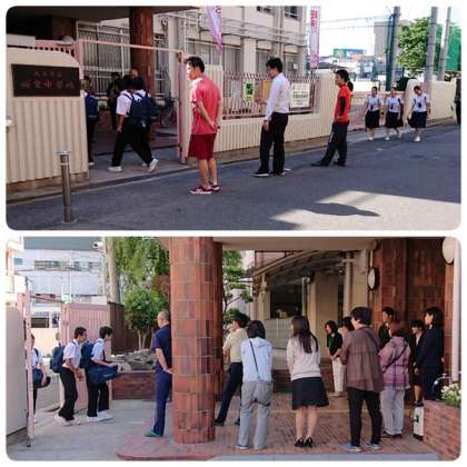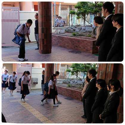 6月3日(月)、朝の登校時に、更生保護女性会、学校元気アップの皆さんが先生方と一緒に正門で「早朝あいさつ運動」に取り組んでいただきました。今日から本校で教育実習に取り組む3名の大学生、木曜日から本校で学校実習に取り組んでいる大学院生1名も加わり、たくさんの大人が、登校する子どもたちに、温かく「おはようございます」と声をかけました。子どもたちも、しっかりと挨拶を返してくれます。