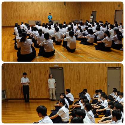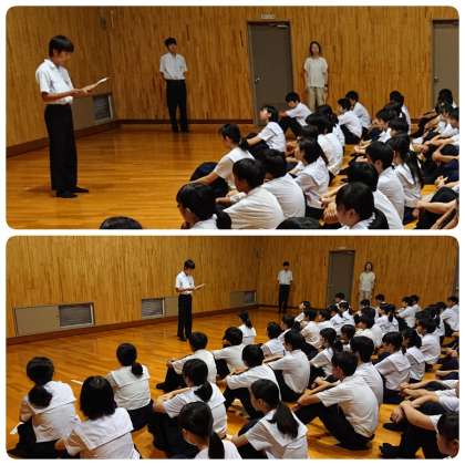 梅津先生の指揮で集合・整列し、委員長の代表による司会で学年集会が始まりました。