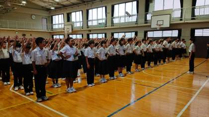 生徒会執行部役員の代表が集合・整列の指揮を執ります。今日の指揮は副会長の押谷君です。