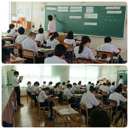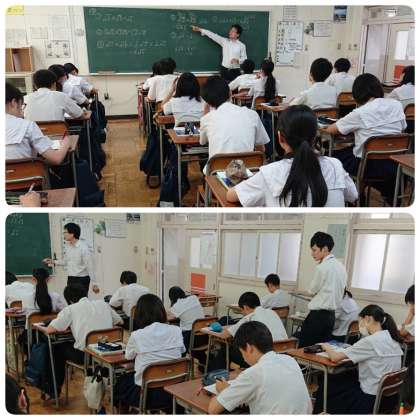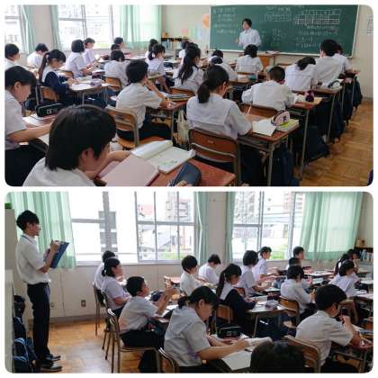 1時間目は西川先生の3年生の授業、2時間目は2年生の玉村先生の授業、4時間目は西先生の1年生の授業に参加し、授業観察を行いながら研修を深めていました。