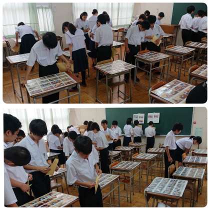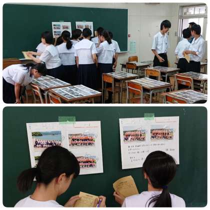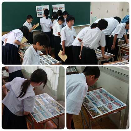 6月14日(金)5時間目、1年生は1年1組の隣にある分割授業用教室で、一泊移住の時に本田写真館の方に撮っていただいた写真を閲覧させていただきました。