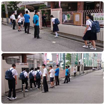 6月17日(月)朝の登校時、更生保護女性会、学校元気アップの皆さんが先生方と一緒に正門で「早朝あいさつ運動」に取り組んでいただきました。