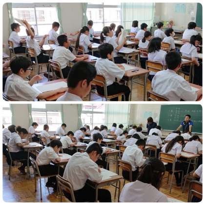 1年生は英語・理科・音楽の順に、2・3年生は理科・英語・音楽の順にテストが行われました。