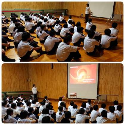 7月3日(水)5時間目、1年生は武道場で性教育の授業に取り組みました。