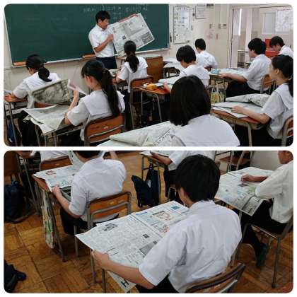 3時間目、大阪商業大学高等学校・上田英明先生による国語「新聞の読み方」の授業です。