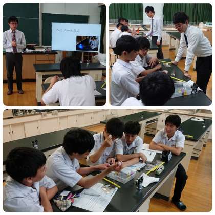 3時間目、大阪産業大学附属高等学校・北野裕典先生と獅子堀陽先生による理科「化学エネルギーの秘密」の授業です。