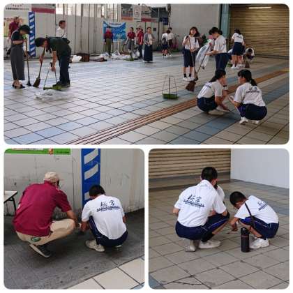 へばり付いたガムの除去、タイルの隙間のゴミや植え込みのゴミ拾いなど、猛暑の中、30分ほどの清掃活動を行いました。