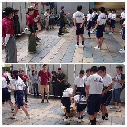 清掃活動終了後、学校元気アップ・コーディネーターであり、前さくら会会長の木浦さんから「地域クリーン活動」の横断幕と幟を作成した経緯についての説明があり、最後に参加者全員にペットボトルのドリンクが配られました。厳しい暑さの中、参加していただいた皆さん、ありがとうございました。