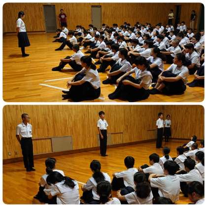 最後に、学年主任の江野先生から2学期に向けて「当たり前のことを当たり前にできる」ということについて話がありました。