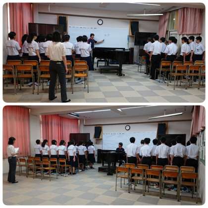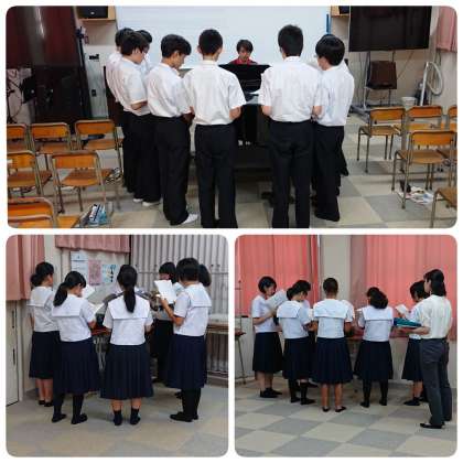 中国からの転入生があり、授業の始めに校歌と大阪市歌を披露しました。2年生の2学期は合唱に取り組みます。昨年度の文化祭で、2年生(現3年生)が学年全員合唱に取り組んだ「大切なもの」をパートに分かれて練習していました。