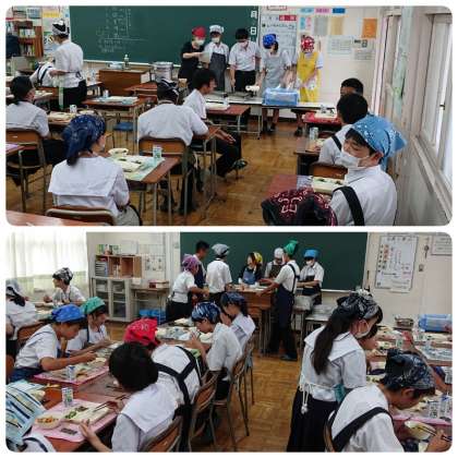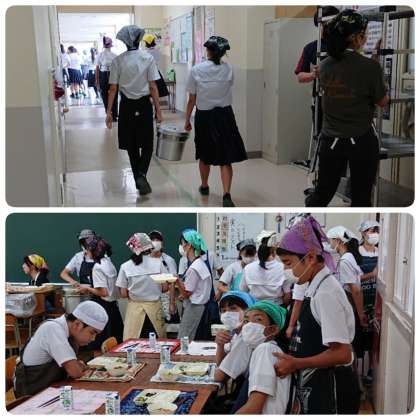 今日のメニューは、肉じゃが、焼きなすのみそだれかけ、あっさりきゅうり、焼きのり、ごはんと牛乳です。