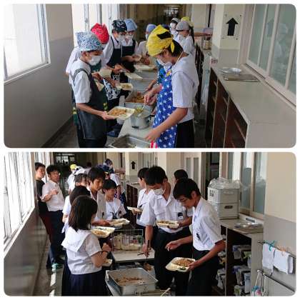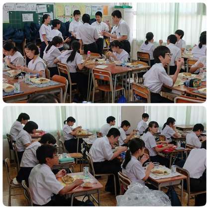9月6日(金)、2年生の給食の様子です。
