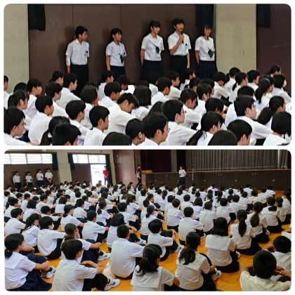 9月9日(月)、体育館において全校集会を行いました。