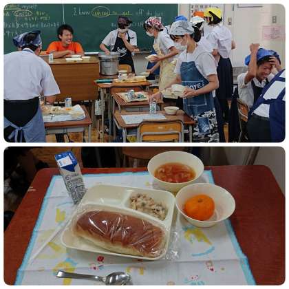 今日のメニューは、豆乳マカロニグラタン、トマトスープ、冷凍みかん、パンと牛乳です。