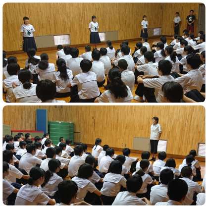 最後に、学年主任の江野先生から、2年後期に向けて学年やクラスの取組に積極的にかかわっていこう、委員長や班長などの役割に前向きに取り組んでいこう、という話がありました。