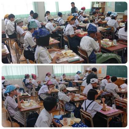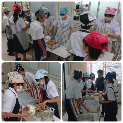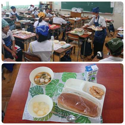 今日のメニューは、あげ餃子、中華煮、和梨、パンと牛乳です。