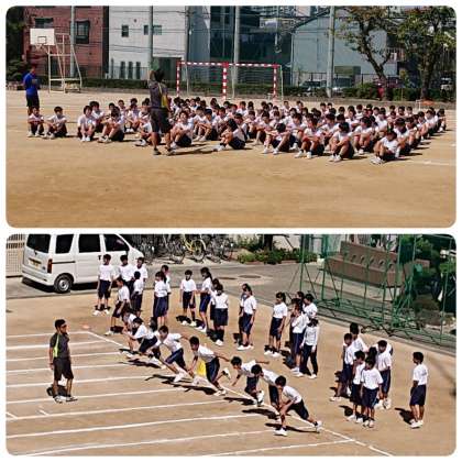 1年生は、男女合同で、体育大会の種目練習を行いました。