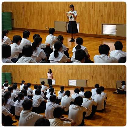 最後に、山口先生から集団行動の練習の成果について子どもたちの頑張りを評価し、その後、卒業までの限られた時間の中で、心の持ち方や受け止め方、自分自身の成長などについて、あるエピソードを通して話がありました。