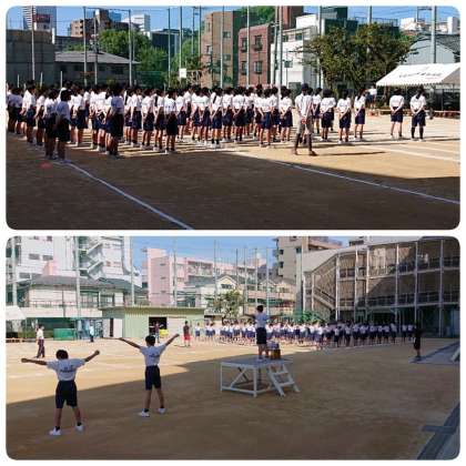 校歌、ラジオ体操、入場行進、開閉会式の練習に取り組みました。