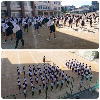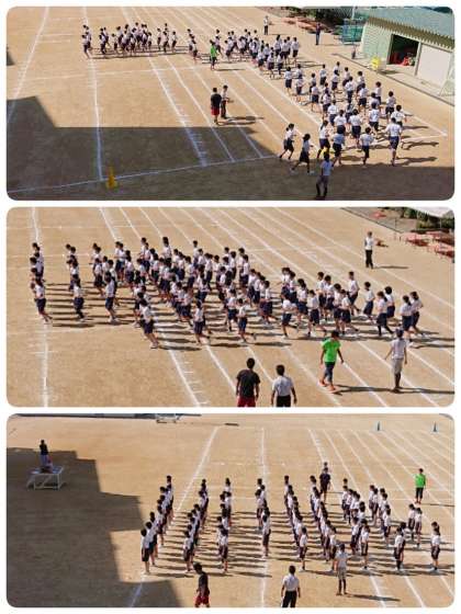 9月20日(金)1時間目、さわやかな秋晴れの中、2年生は運動場で体育大会学年練習を行いました。