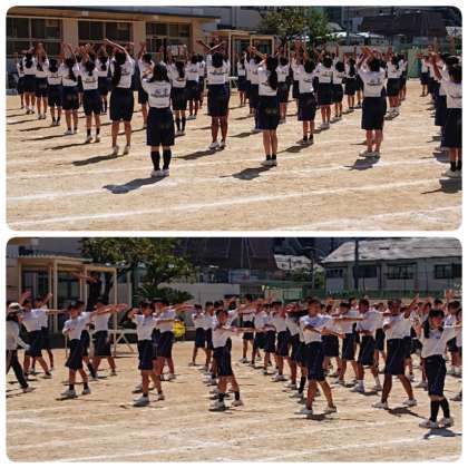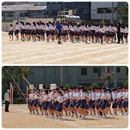 9月20日(金)3時間目、1年生は運動場で体育大会学年練習を行いました。