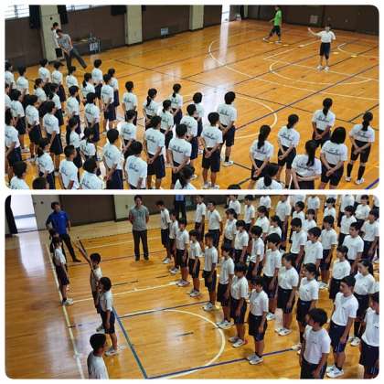 入場行進の練習に続いて、開会式、閉会式の流れに沿って練習していきました。